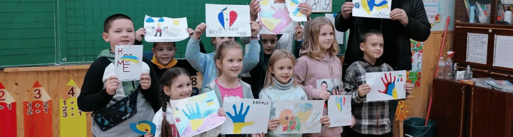 A l’initiative d’une professeure cherbourgeoise, nous sommes également allés à la rencontre de petits écoliers de Drohobych et avons procédé à un échange de dessins entre enfants du Nord Cotentin et enfants ukrainiens.